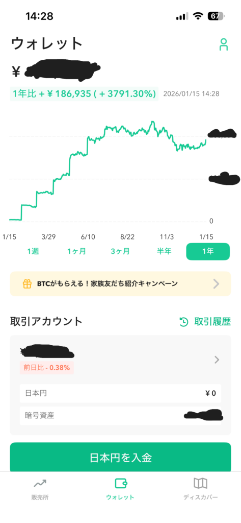 しかし、「これからは円安のリスクもあるし、資産の一部をデジタル資産に移すべきだ」と決意。 約1年前に、思い切って150万円をビットコインに入れ、さらに毎月コツコツと「積立」を続けました。