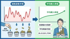 これを自動で繰り返すことで、購入価格(取得単価)が自然と平準化され、「高値で全力買いしてしまった!」という最悪の事態を回避できるのです。