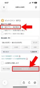 ここで「毎日プラン」にチェックを入れ、積立金額を入力します。 もちろん金額は自由ですが、最初は無理のないワンコイン(500円)から始めるのがおすすめです。最後に「確認画面へ」を押せば設定完了です!