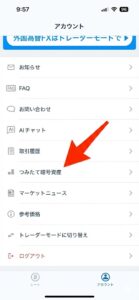 まずGMOコインのアプリを開き、右下の「アカウント」メニューなどから「つみたて暗号資産」を選択します。