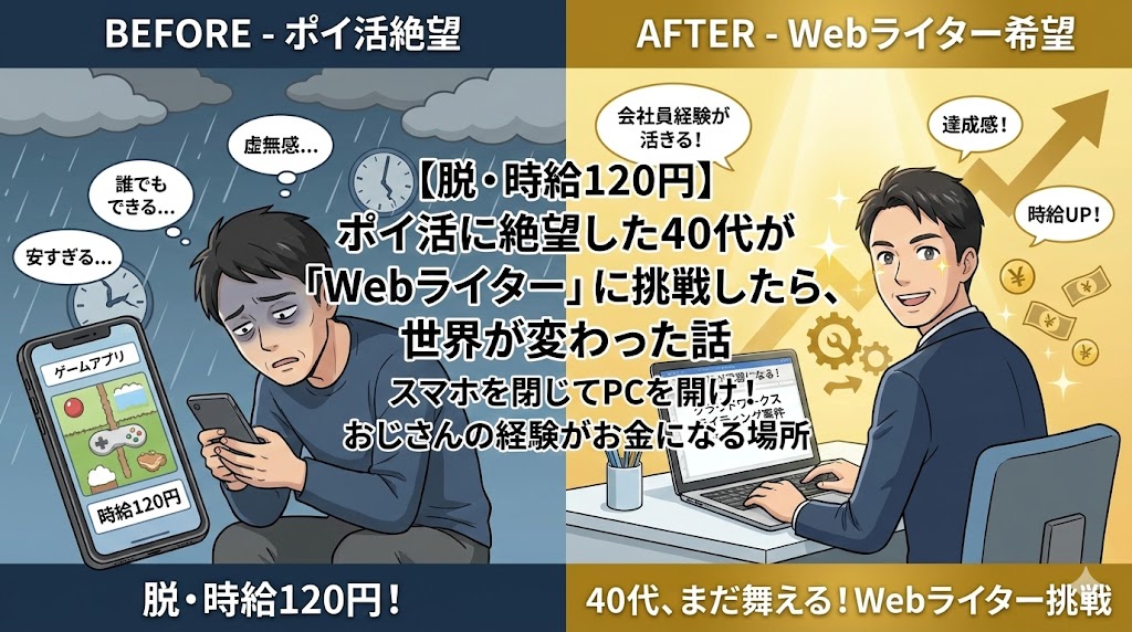 前回、僕はスマホゲームのポイ活を1週間ガチって「258円(時給120円)」しか稼げなかったという、涙なしには語れない話をしました。 あの地獄のような経験で、僕は骨の髄まで理解しました。 「40代は、自分の時間を安売りしてはいけない」と。