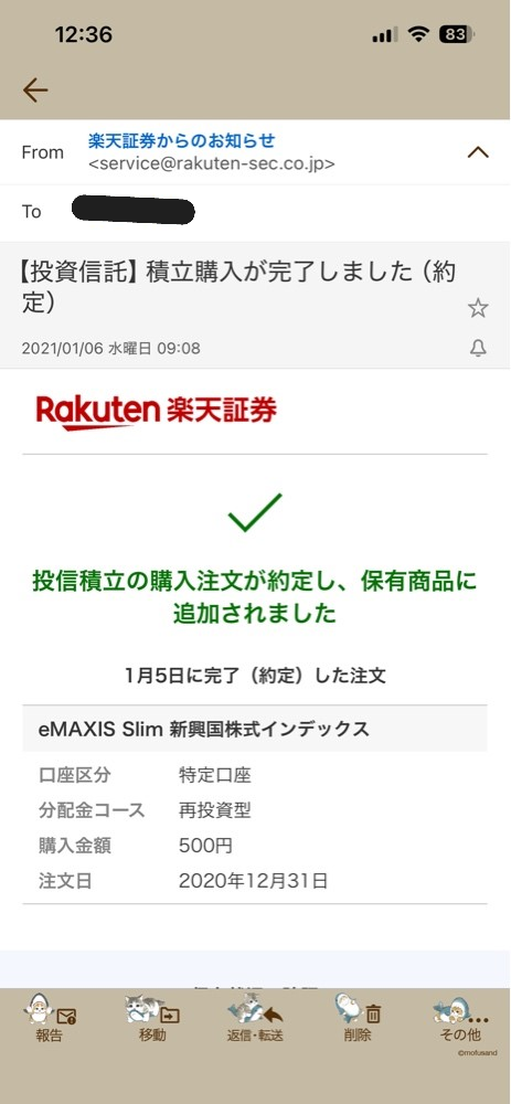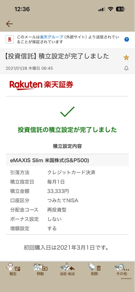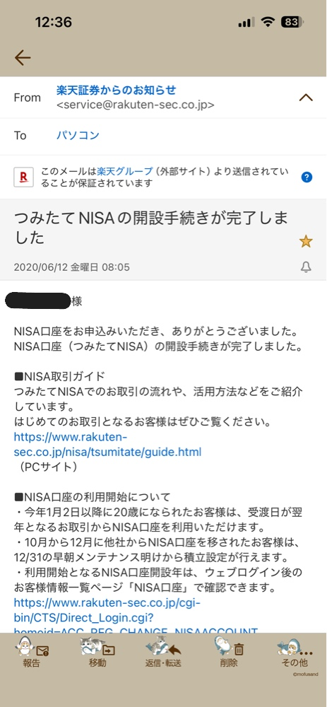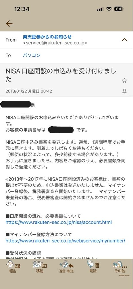 2018年1月。 楽天証券から一通のメールが届きました。 「NISA口座開設のお申込みを受け付けました」
